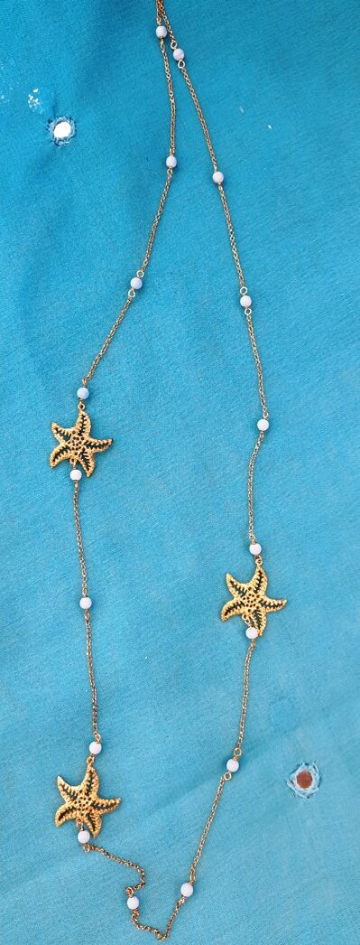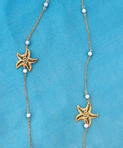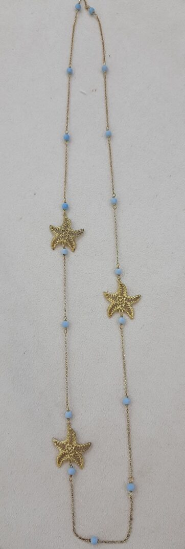 Necklace in silver plated with yellow gold and design starfish and beads paste turquoise